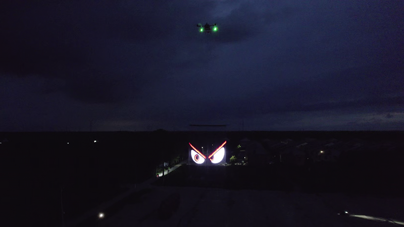 So, while the drone handles the flight, the screen plays pre-uploaded content independently during the show.
